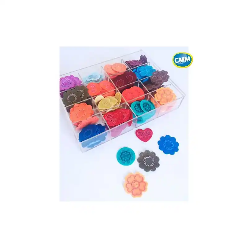 Aplicacion Bordada Ftsia.Termoadhesiva 5cm aprox. realizado sobre base fieltro con multiples bordados(Unidades) Presentacion caja metacrilato con tapa corredera de regalo (4 modelos x 4 colores x 10 uds)_x005f_x000D_