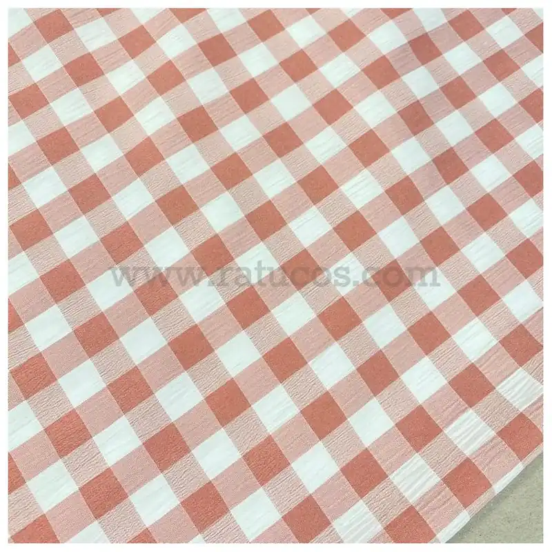 Tejido de cuadro vichy bicolor seersucker, en color rosa.