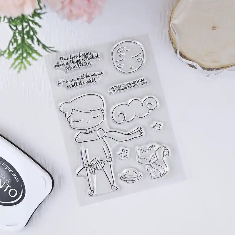 El set de sellos Unique recrea personajes del cuento El Principito, por lo que es ideal para proyectos infantiles o pasar una tarde entretenida con tus pequeños, sellando y coloreando.