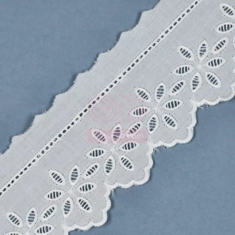 Puntilla de tira bordada en color blanco.