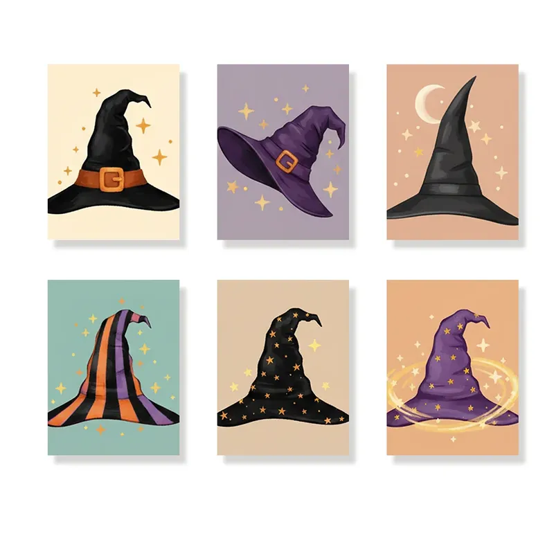 Oferta De Temporada Pintar por números – 6 mini pinturas | Sombrero de bruja y estrellas