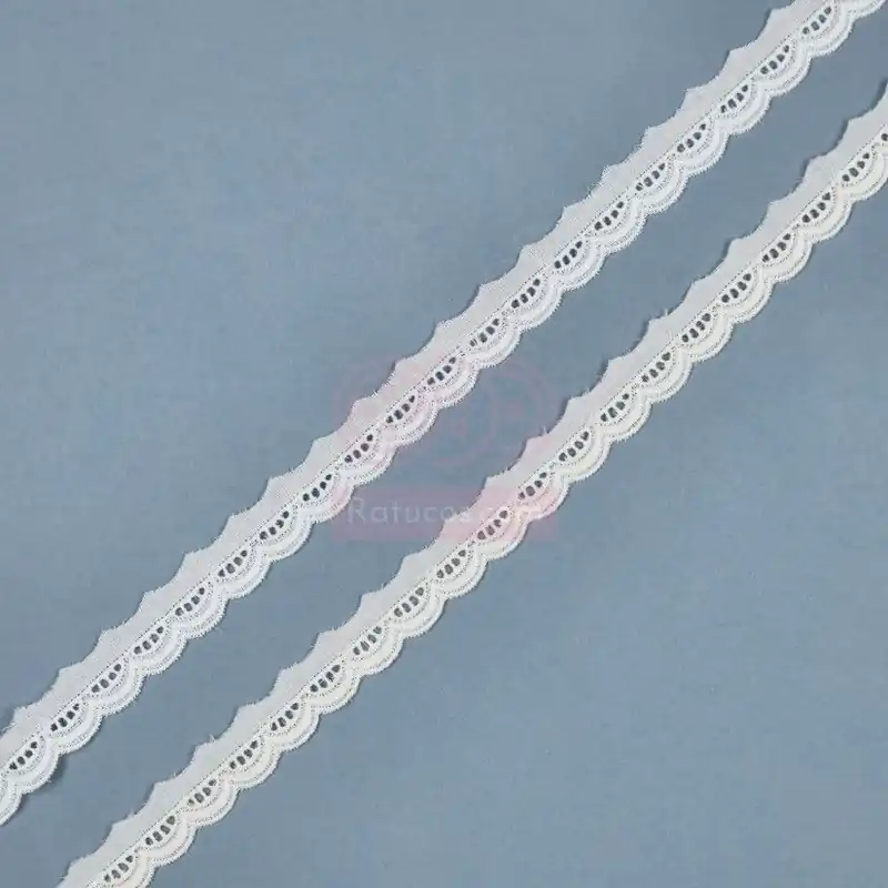 Puntilla de tira bordada, disponible en color blanco.