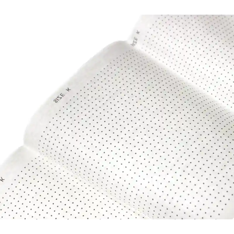 - Corte y Posicionamiento: Corta la sección necesaria del papel de puntos. Coloca el papel con los puntos hacia abajo, en contacto con el revés del tejido. Asegúrate de que el relieve de los puntos esté en la cara que toca la tela.