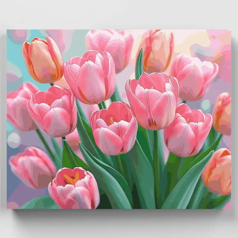 Oferta Flash Ramo de Tulipanes Rosas – Kit de pintar por números – Lienzo Enrollado / 24 Colores