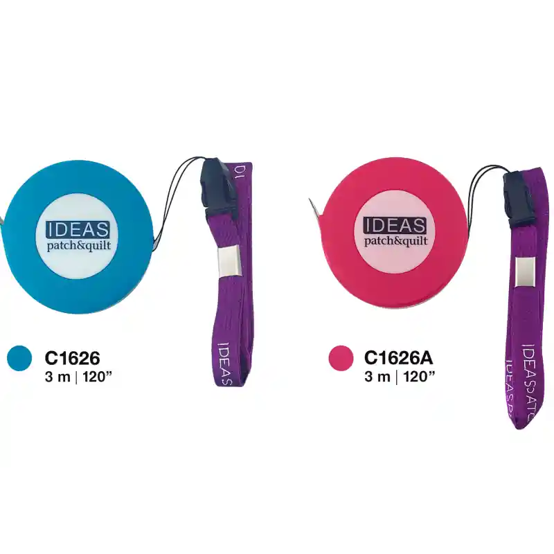 Cinta métrica enrollable automática de 3 metros (120 pulgadas), disponible en color azul o rosa. Fabricada en materiales resistentes y flexibles, es ligera, práctica y perfecta para medir tejidos o prendas con total comodidad.