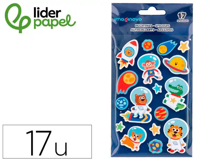 ¡Disfruta llenando todo tu mundo con las nuevas pegatinas de Imaginovo! Descubre todas las colecciones de estos divertidos adhesivos llenos de color, brillo, y un tacto muy agradable. Atrévete a darle un toque personal a tus cosas. Son aptas para todas las superficies: decora tus cuadernos, diario, agenda, portátil, móvil, botella, taquilla… ¡lo que quieras! Estas pegatinas son duraderas y resistentes al desgaste, garantizando que tu diversión dure mucho tiempo. Características: EVA, 190 x 105, Luminosas Astronautas, Pegatina con Relieve, 1 hoja de pegatinas Colecciona las pegatinas más adorables de la mano de Imaginovo.