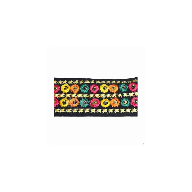 Tapacosturas nº107 multicolor con lentejuelas incrustadas. Perfecto para el remate de labores, manualidades, o para decorar prendas y tapicerías. De aprox 33mm. Precio por metro.
