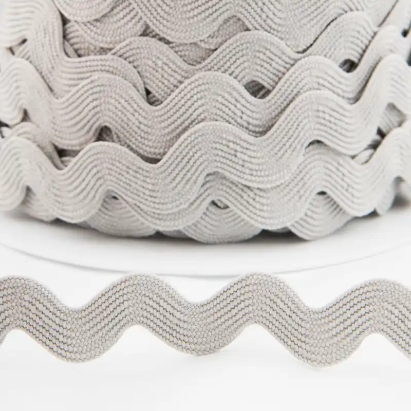 Cinta de ondulina en color gris, pasamanería en cinta con forma de zigzag para complementar tus creaciones, también conocida como cintas serpentine, sandunga, picunela…Disponible en tres medidas de ancho de cinta (el precio cambia por medida), 9 milímetros, 14 mm y 20 mm.Compra los metros de ondulina que necesites a partir de un metro.