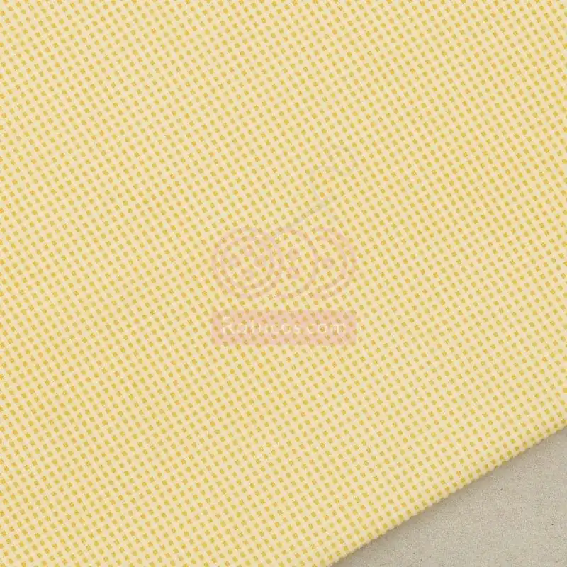 Tela de tejido batista, con estampado de pequeños cuadros en color amarillo.