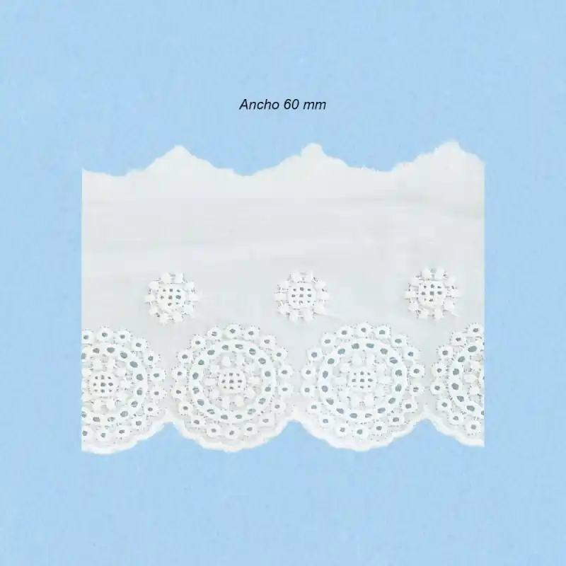 Bordado batista 100% Algodon Ancho 60mm. Fabricacion nacional gran calidad. (Metros)