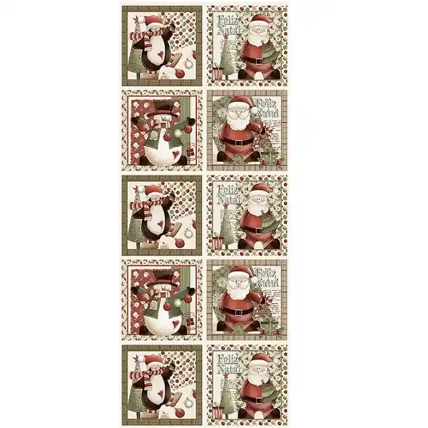 Panel Bloques Navideños que pertenece a la colección Navidad Encantada de Fuxiscos e Fricotes. En el podemos ver un diseño navideño, el cual esta dividido en 10 bloques navideños, con diseños en los que aparece Papa Noel, un pingüino navideño, un muñeco de nieve, etc.