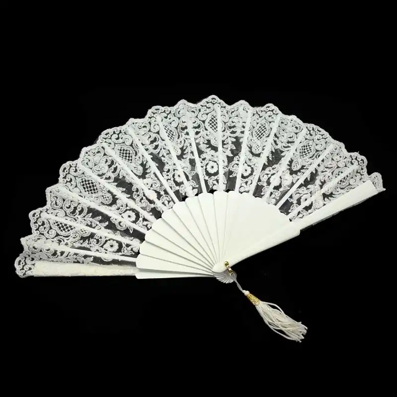 Abanico de encaje en color blanco, perfecto para novias. Mide 23cm de largo. Es un abanico muy vistoso y llamativo que podrás utilizar en una ocasión especial o en tu día a día. Sus varillas de madera son muy resistentes y duraderas. Tiene un diseño muy elegante y sofisticado. Se presenta en una funda, para que puedas guardarlo y transportarlo fácilmente.