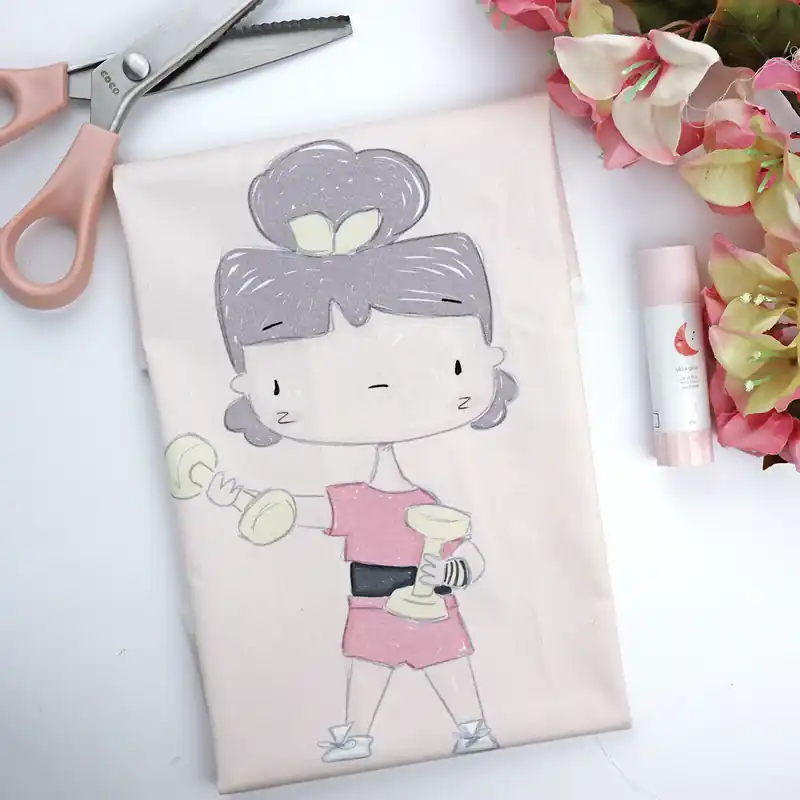 Su diseño lleva una muñeca haciendo pesas, con los colores de la colección La Sra. Lola y está elaborado en popelín de algodón 100% orgánico, especial para trabajos de costura creativa.