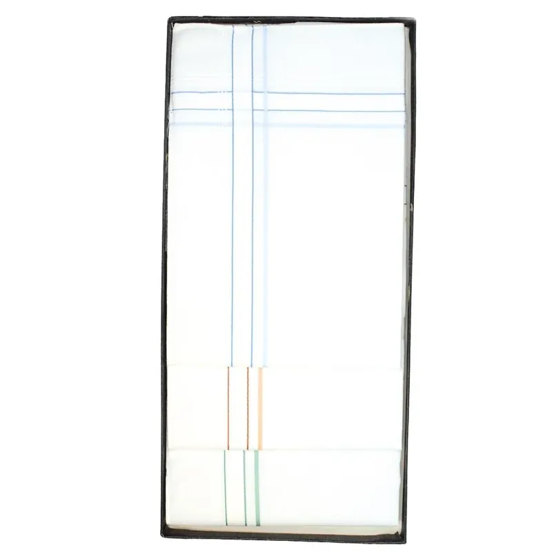 Caja con 3 pañuelos de caballero de 36 x 36 cm, confeccionados en 100% algodón de alta calidad. Cada pañuelo presenta un diseño clásico de cuadros finos en tonos suaves, ideales para un estilo tradicional y elegante. Su tejido natural garantiza suavidad, resistencia y una excelente absorción, siendo perfectos para el uso diario o como detalle personal con un toque distinguido. Estos pañuelos reutilizables ofrecen una alternativa sostenible frente a los desechables, y su cuidada presentación en caja los convierte en una excelente opción para regalar. Fabricados en España por Canellas, sinónimo de tradición textil desde 1947.