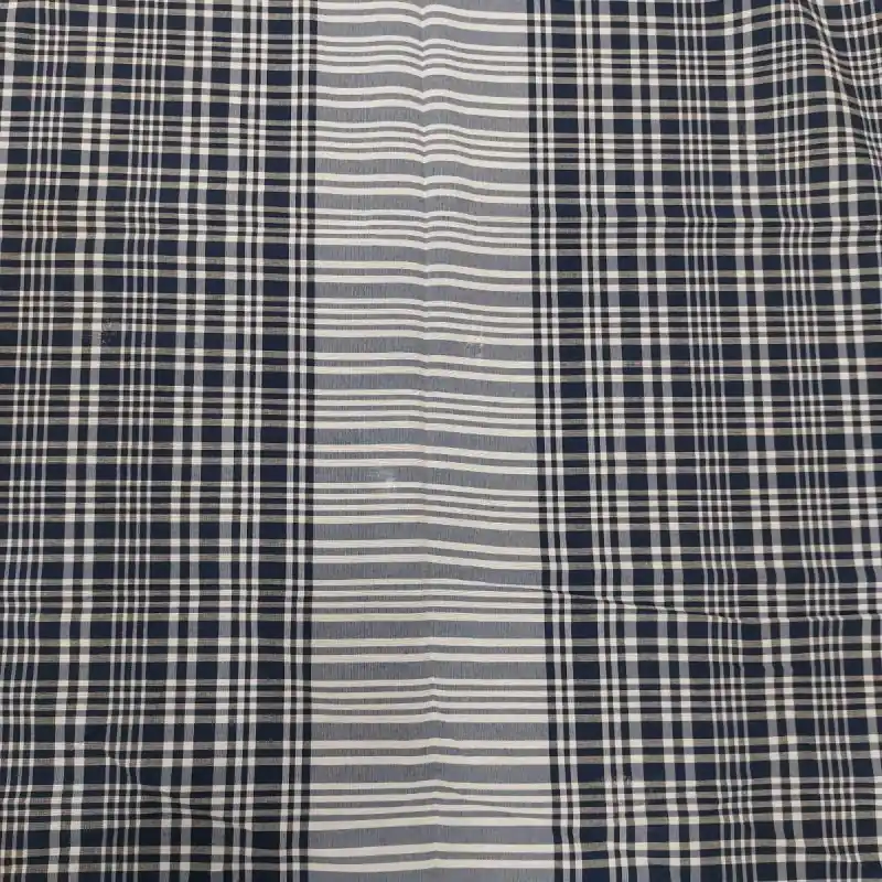 Tela de pañuelo cuadro valenciano en blanco y azul marino con el centro y los extremos a rayas