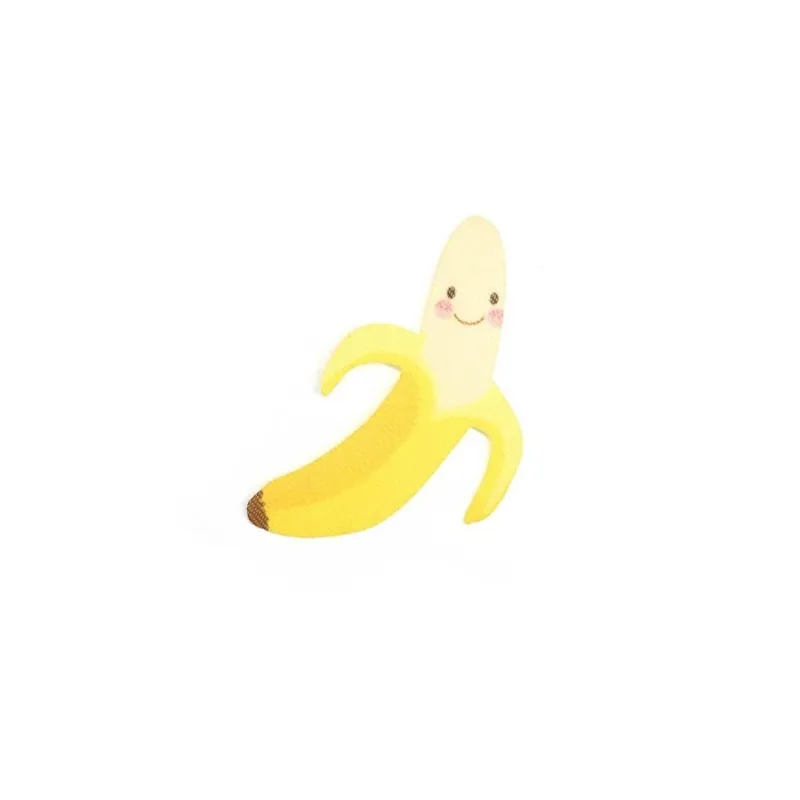 Aplicación de un plátano sonriendo. Este parche termoadhesivo es perfecto para reparar cualquier roto en pantalones, chaquetas o camisetas. Es una aplicación muy vistosa y llamativa que podrás utilizar para dar un estilo diferente a tus prendas o accesorios. Mide 6cm de largo y 3.5cm de ancho total. Se puede pegar en cualquier tipo de tejido aplicando calor con la plancha durante pocos segundos.