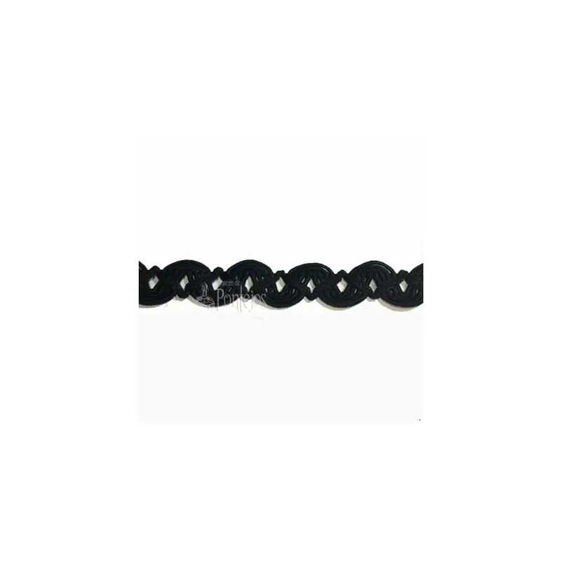 Pasamanería de seda nº003 disponible en varios colores y con acabados en brillo. Especial para rematar tus labores y manualidades, o para darles un acabado distinto a tus prendas favoritas. De aprox 15mm. Precio por metro.