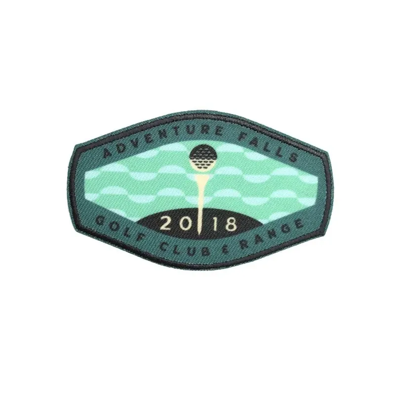 Aplicación autoadhesiva con la frase Adventure Falls Golf Club Range. En color verde. Esta aplicación es perfecta para poder personalizar todo tipo de prendas o accesorios. Gracias a su pegamento en la parte posterior del parche podrás pegarla a cualquier superficie. Mide 8.5cm de largo y 5cm de ancho total. Especialmente ideada para aquellas prendas que no pueden ser planchadas. Perfecta para abrigos de invierno, plumíferos, chuvasqueros… Muy útil para poder tapar desgarros o rotos en la ropa.