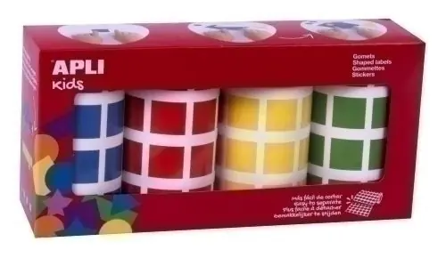 Pedido Al Por Mayor Gomets Apli Rollo Cuadrado 20 mm 7080 uds. Surtido Pack de 4 Rollos (Azul, Rojo, Amarillo y Verde) (18326)