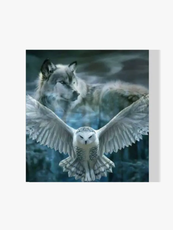 Diamond Painting – Búho blanco con lobo