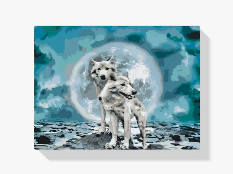 Diamond Painting – Lobos blancos bajo la luna llena
