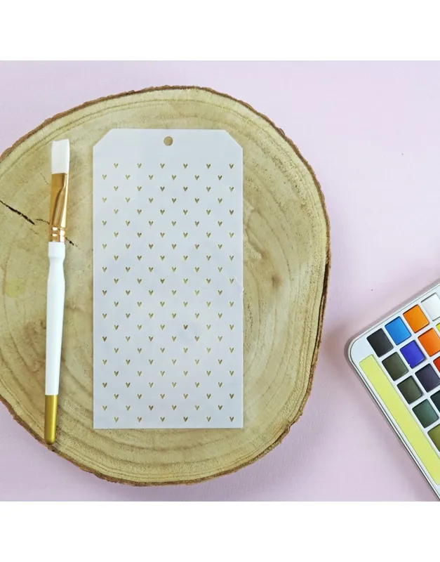La plantilla de estarcido Toffee está incluida en mi colección de otoño, bautizada con ese nombre. Son pequeños corazones que le dan un toque delicado a tus creaciones.