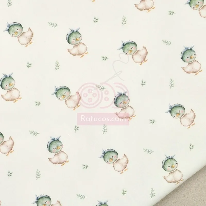 Tela de popelín con estampado de patitos.