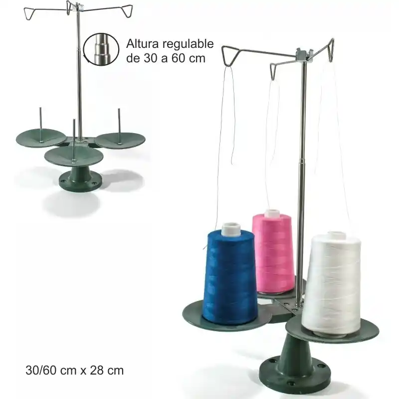 - Capacidad: Para 3 conos de hilo.