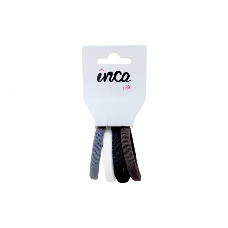 El Pack 4 Gomas Acrílicas Colores Surtidos Invierno Inca 11001 es un conjunto de cuatro gomas elásticas para el cabello, presentado en un blíster. Incluye una paleta de tonalidades invernales como beige, gris oscuro, marrón y negro, que se adaptan a diversos estilos. Fabricadas en material acrílico por Inca Hair, ofrecen una sujeción cómoda y duradera, ideales para el uso diario y para complementar peinados discretos o elegantes en el ámbito de la confección y manualidades.