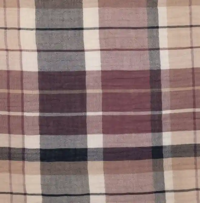 Muselina, bambula o doble gasa con estampado de cuadros en varios tonos de malva
