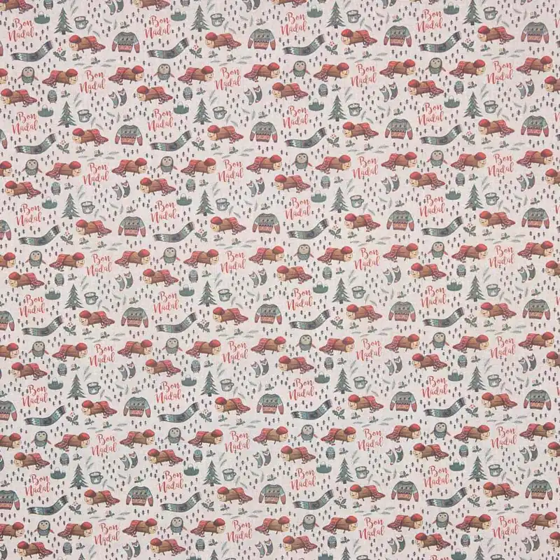 Tela de navidad decorativa y patchwork modelo bon nadal. Tela popelín de algodón estampada sostenida, con poco cuerpo y fina, ideal para decorados, confección de manteles y todo tipo de decoración del hogar y patchwork.