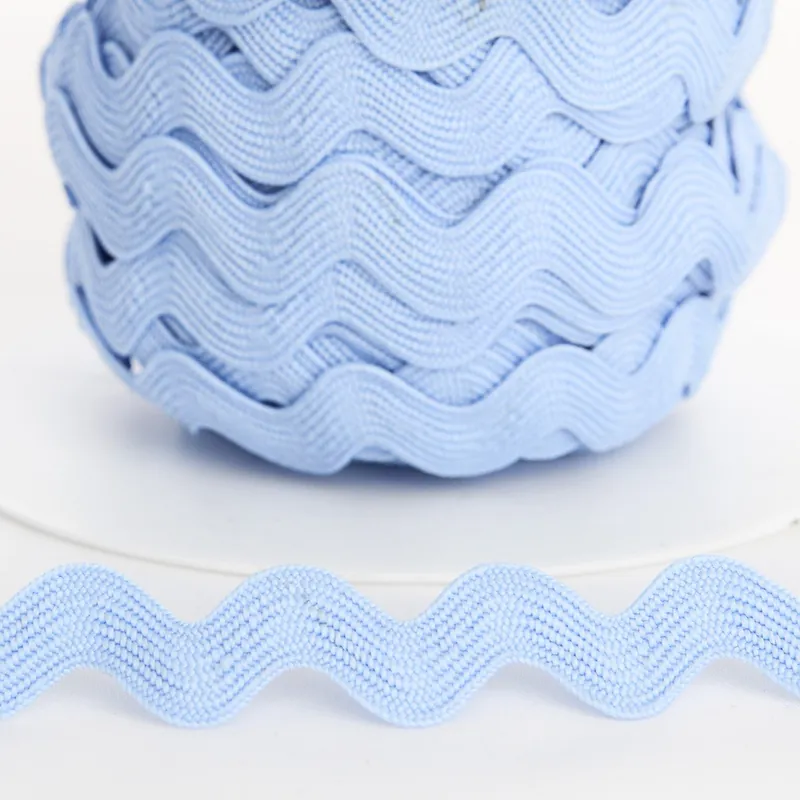 Cinta de ondulina en color azul celeste, pasamanería en cinta con forma de zigzag para complementar tus creaciones, también conocida como cintas serpentine, sandunga, picunela…
