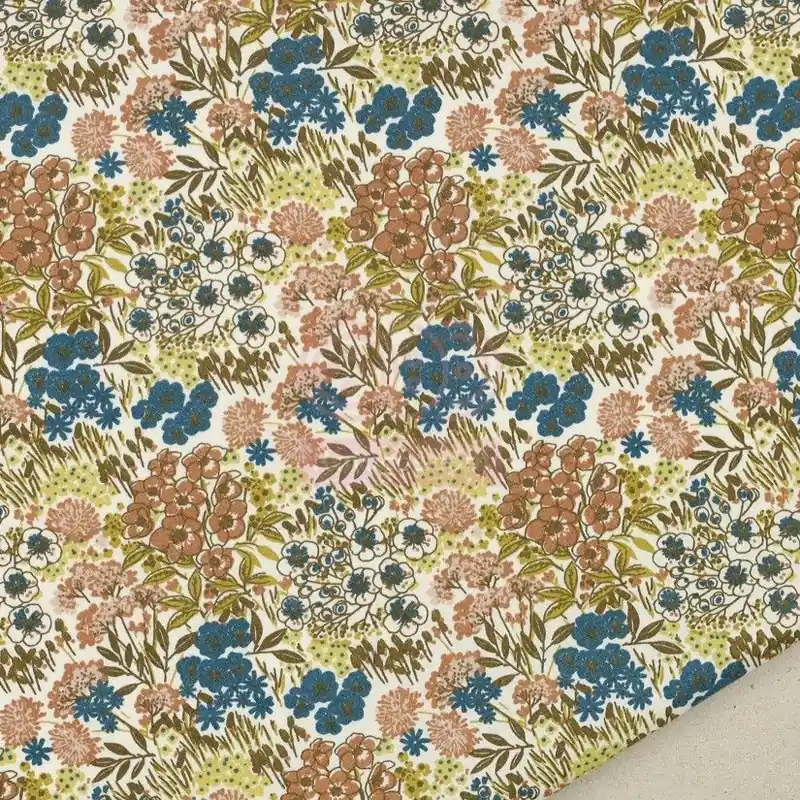 Tela de popelín (popelina) de algodón con estampado de pequeñas flores.