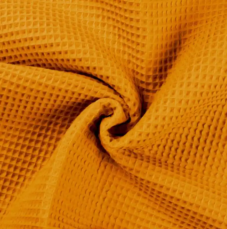 La tela de waffle o de gofre, llamada así por su característico dibujo en relieve, es muy suave y manejable