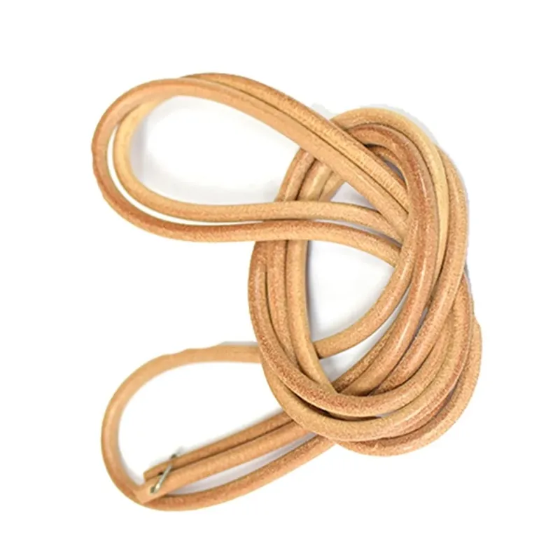 Correa de cuero con grapa, para transmisión de movimiento de máquinas de coser antiguas.185 cm de longitud y 5mm de grosor.