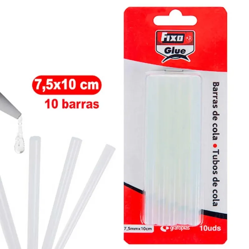 Estas barras de silicona son el recambio para tu pistola de silicona. El paquete contiene 10 barras de silicona. Mide 7.5mm x 100mm. Gracias a estas barras podrás pegar cualquier material de tus proyectos. Ideal para pegar madera, plástico, tejidos… Solamente tendrás que introducir la barra de silicona en la pistola y comenzar a trabajar.