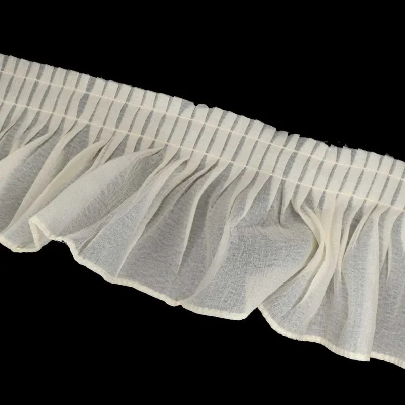 Este volante fruncido de gasa de 10 cm de ancho es perfecto para aportar un acabado ligero, vaporoso y elegante a todo tipo de proyectos de costura y confección. Su textura delicada y translúcida lo convierte en una opción ideal para vestidos de fiesta, trajes regionales, prendas infantiles o creaciones de alta costura. El fruncido superior permite una fácil aplicación, adaptándose con suavidad al contorno de la prenda. Disponible en diferentes colores, se vende por metros para ajustarse a tus necesidades. Añade un toque etéreo y sofisticado a tus diseños con este volante de gasa.