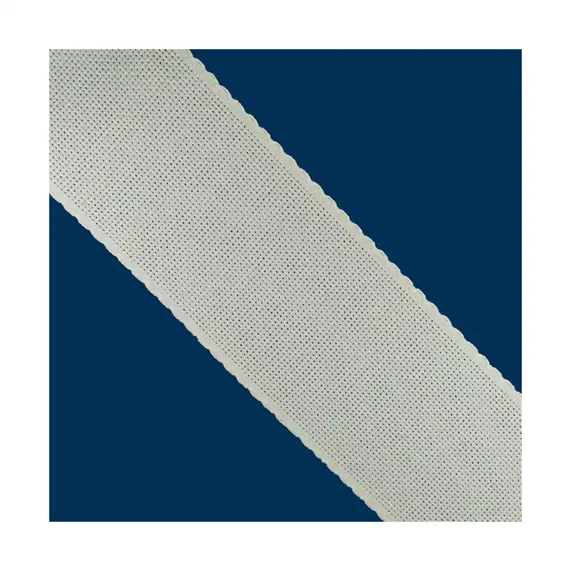 Clásica cinta de panamá perforada para bordar con la técnica de punto de cruz. De color beig y de composición 100% algodón. La tienes disponible en dos anchos de cinta: 5cm y 7cm. El tejido va rematado con una fina cenefa del mismo tono de color.