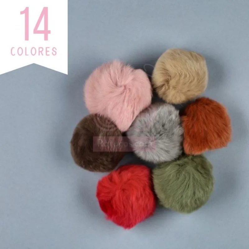 Pompón de pelo de conejo teñido, disponible en varios colores.