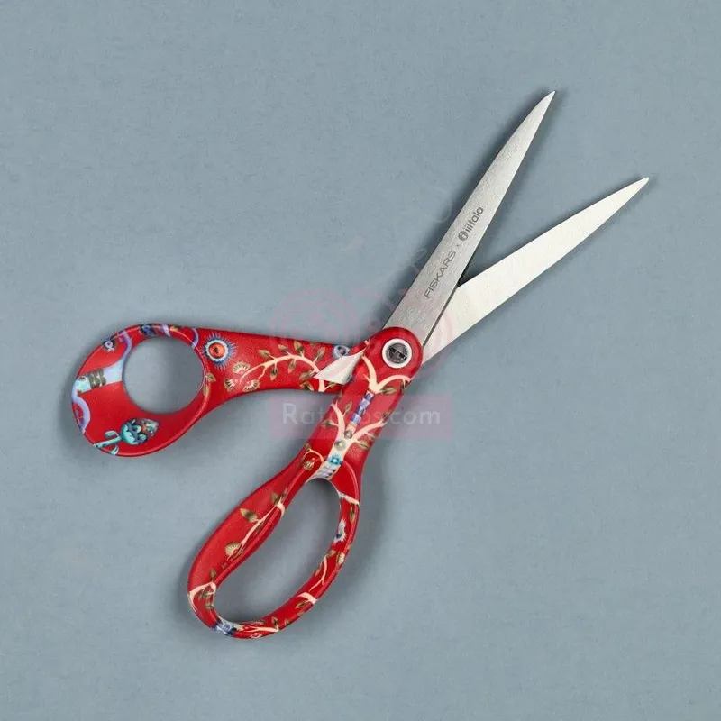 El mango de la tijera es plástico y está estampado exclusivo y limitado con ilustraciones de Iittala para Fiskars.