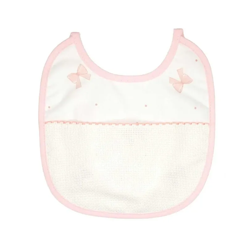 Babero infantil decorado con un delicado diseño de lazos, ideal para aportar un toque elegante y tierno a las comidas de los más pequeños. Disponible en diferentes colores para adaptarse a cualquier estilo o canastilla de bebé.Fabricado en tejidos suaves y agradables al tacto, protege la ropa del bebé de manchas y derrames durante la alimentación.Dispone de zona inferior en panamá, perfecta para personalizar el babero con bordados, nombres o pequeños dibujos, convirtiéndolo en un regalo muy especial y personalizable.Mide 19 cm de ancho por 17 cm de alto, con cierre ajustable que garantiza comodidad y sujeción segura.