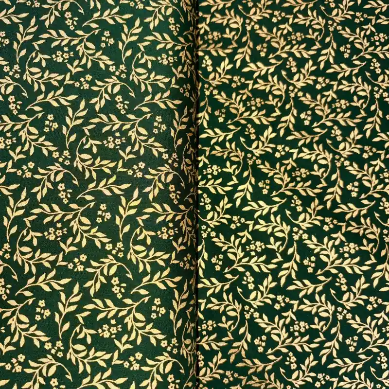 Promoción Algodón Navidad Verde Dorado – Ramitas y Estrellas