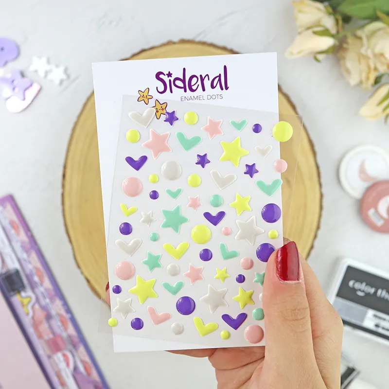 Este set de enamels Sideral incluye 68 gotas de esmalte duro, en diferentes formas y recubiertos con los colores de esa colección espacial.