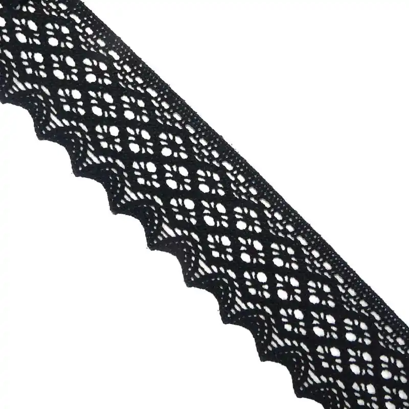Puntilla bolillo rombos 5cm. Varios colores – Negro Envío Inmediato