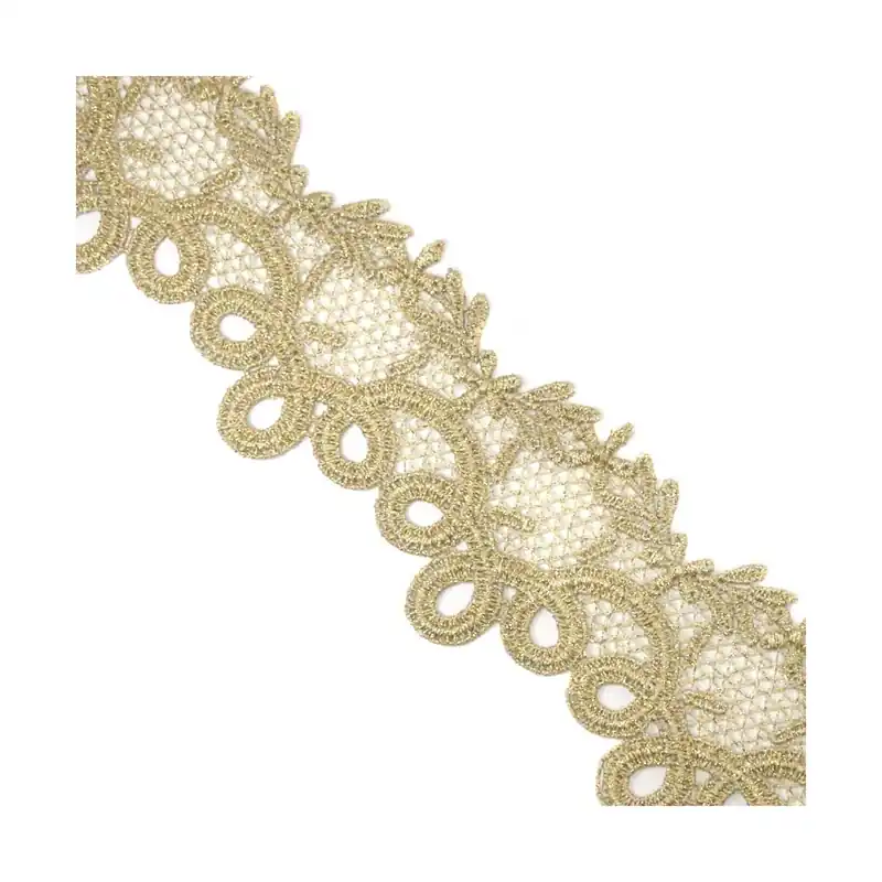 Puntilla de guipur dorada ondas y flores 6cm – Metalizado Oro Tendencia