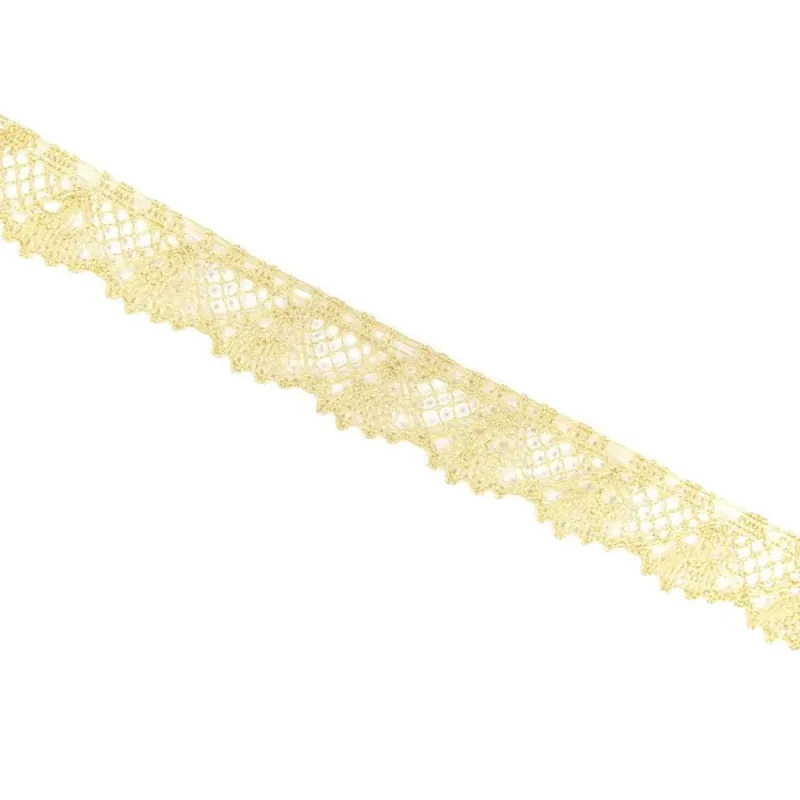 Añade un toque de brillo y distinción a tus creaciones con esta puntilla metalizada en color oro, elaborada en 100% lurex y con un ancho total de 2 cm. Su diseño fino y reluciente la convierte en una opción versátil y sofisticada para decorar prendas, complementos, elementos de hogar o trabajos de carácter ceremonial. Ideal para detalles en Semana Santa, bordes de mantos, túnicas, estandartes o cualquier proyecto relacionado con celebraciones religiosas, esta puntilla dorada aporta elegancia sin recargar. Su composición metálica asegura durabilidad y resistencia, mientras que su acabado ornamental realza cualquier diseño con un estilo clásico y luminoso. Se vende por metros, lo que permite ajustarse fácilmente a todo tipo de necesidades creativas y decorativas.