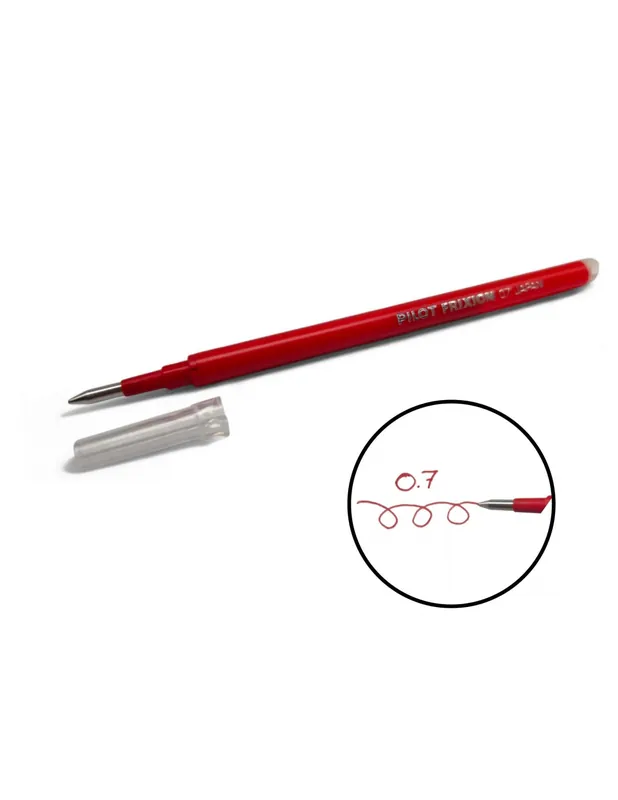 Recambio de tinta termosensible en color rojo, especialmente útil para marcar sobre cuero. Ideal para profesionales de la marroquinería, calzado o trabajos artesanales, ya que permite escribir, borrar y corregir sin dañar el material. Compatible con bolígrafos Pilot Frixion (Ball, Clicker y Pro). Punta de 0.7 mm con trazo medio para una escritura clara y precisa. Su formato recargable ayuda a reducir residuos y mantener un trabajo limpio y sostenible.