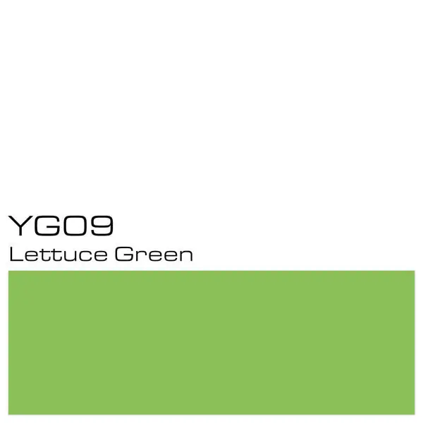 Recarga Copic Ink YG09 Lettuce Green con 12 ml de tinta para todos los modelos de rotuladores Copic: Sketch, Ciao, Classic y Wide (comprueba antes que la modalidad de tu rotulador dispone de este color).