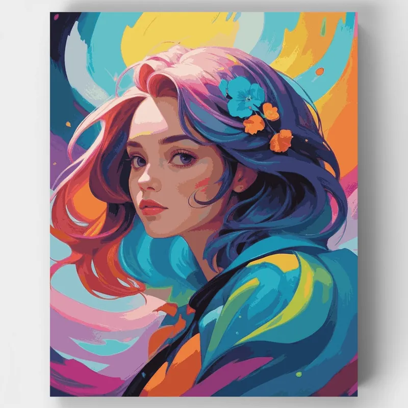 Transforma tu espacio con este encantador kit de Pintar por Números que presenta un vibrante retrato de fantasía. La obra de arte muestra cabello ondulante en fascinantes tonos de coral y azul profundo, adornado con delicadas flores sobre un fondo arremolinado de tonos turquesa, amarillo y púrpura. Esta pieza abstracta moderna combina una belleza etérea con audaces elecciones de color para crear una pintura final verdaderamente cautivadora. ¿A quién le encantará? Perfecto para entusiastas del arte que aprecian los retratos contemporáneos y las paletas de colores vibrantes, este kit de Pintar por Números ofrece una experiencia creativa deliciosa tanto para principiantes como para pintores intermedios. Ya sea que busques desarrollar tus habilidades de pintura, encontrar un pasatiempo relajante o crear un impresionante arte de pared para tu hogar, este radiante retrato proporciona el equilibrio perfecto entre desafío y satisfacción. ¡Comienza tu viaje artístico hoy y da vida a esta fascinante obra de arte con nuestro kit de Pintar por Números!