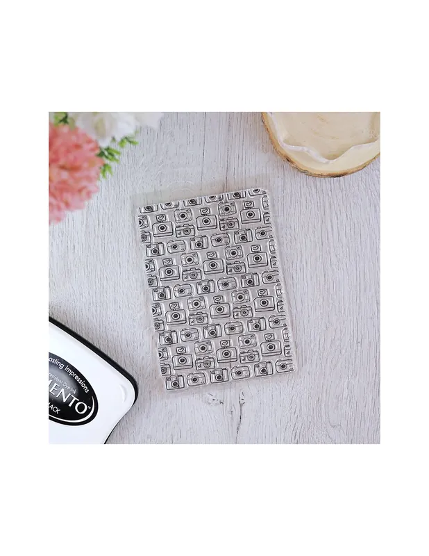 Este sello Fondo Cámaras, es un patrón de estas, diseñado para alegrar grandes espacios de papel. Por eso mide 15×10 cm